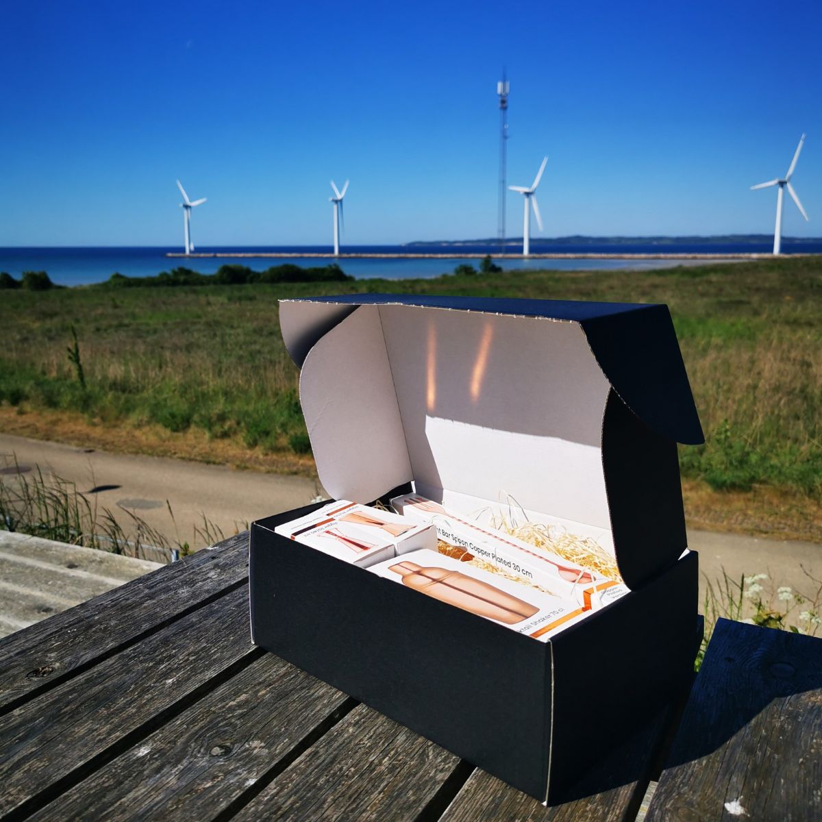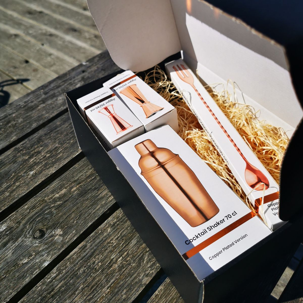 Alles is netjes verpakt in een zwarte geschenkdoos, wat het een uitstekend cadeau-idee maakt voor cocktailliefhebbers of een geweldige manier om zelf drankjes te gaan mixen.