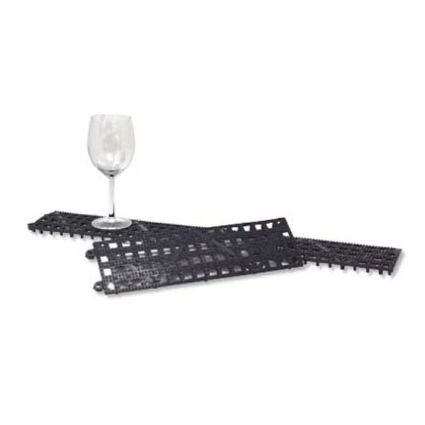 Deze 9×31 cm koppelbare glasmat is vervaardigd uit duurzaam zwart plastic en ontworpen om uw glaswerk stabiel en verhoogd te houden tijdens opslag.
