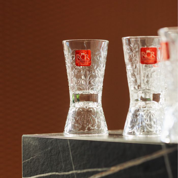 RCR is een Italiaanse glasfabrikant die bekend staat om elegant design en duurzaamheid. Hun productie wordt aangedreven door hernieuwbare energie, wat resulteert in kristalglas dat zowel stijlvol als milieuvriendelijk is.