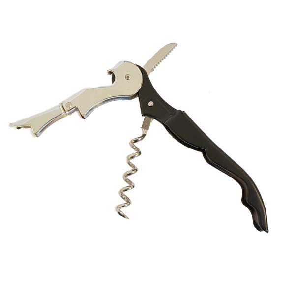 Wijnopener Zwart Dubbele Hefboom – klassieke kurkentrekker met flesopener en foliesnijder.